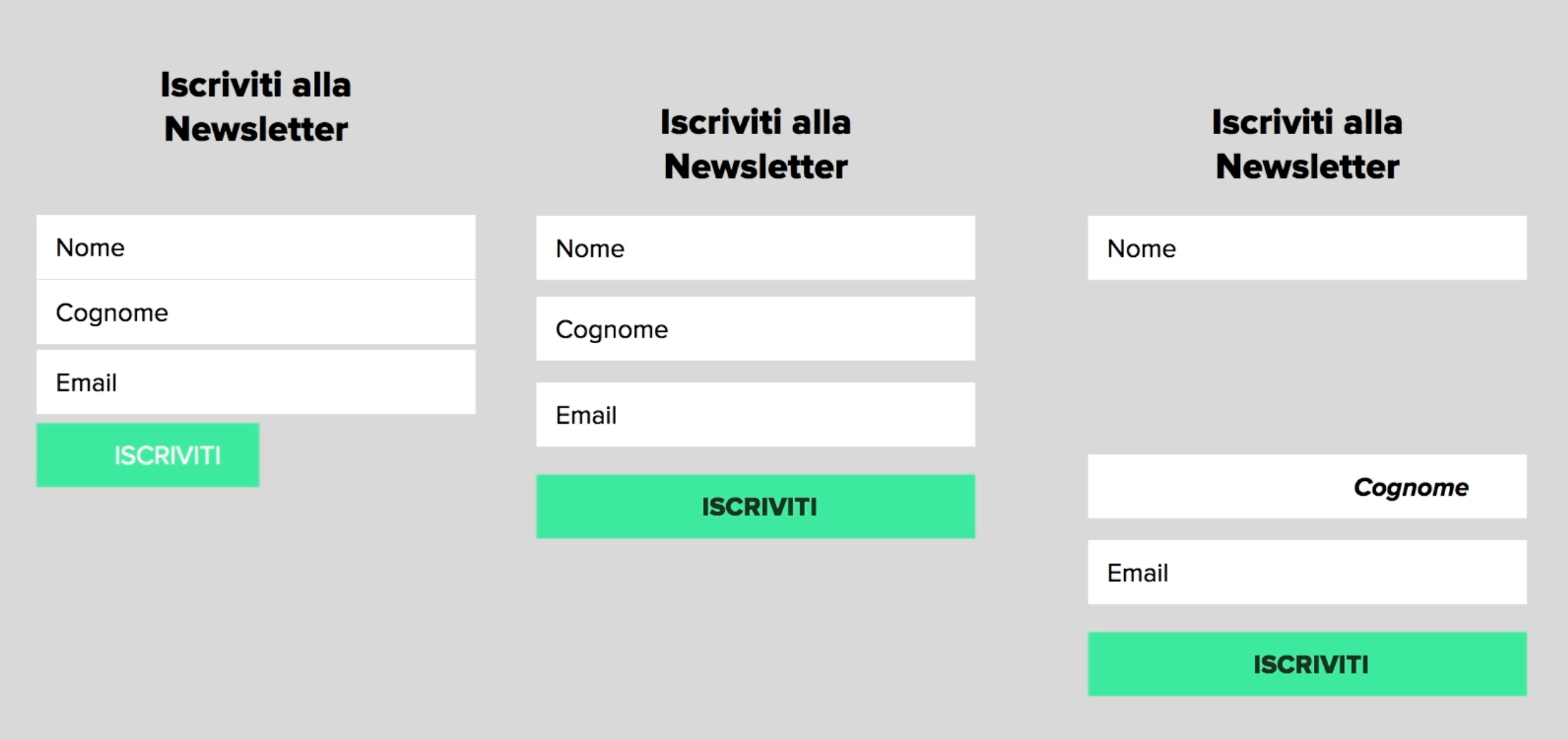 colore + dimensione = focus molto chiaro -> esempio call to action