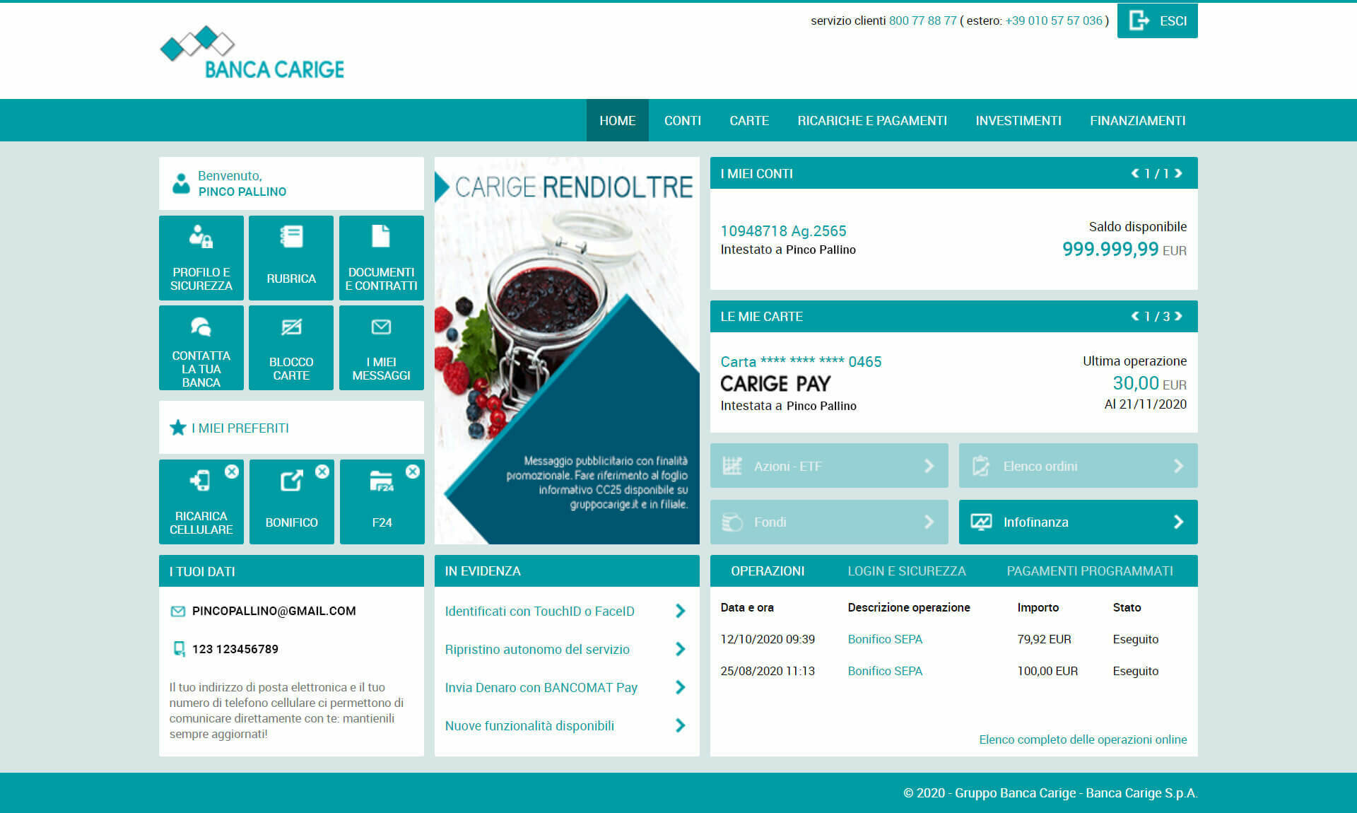 Esercizio: cosa vorrebbe fare un utente che entra nel proprio home banking?