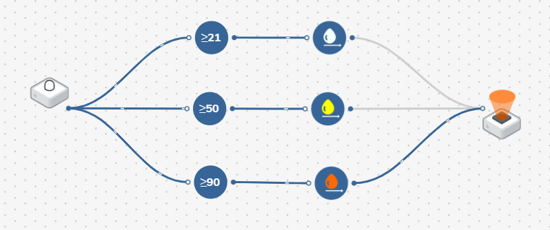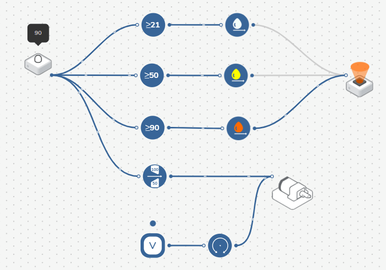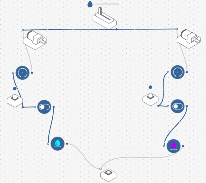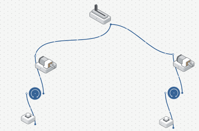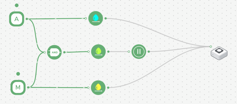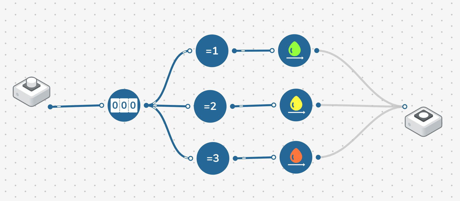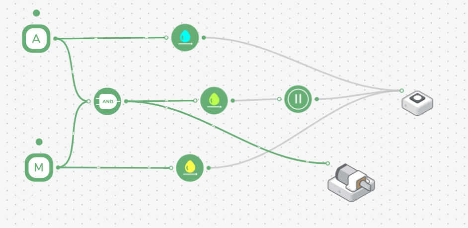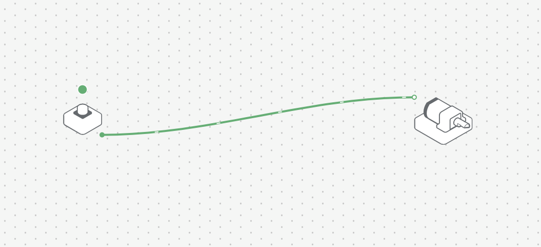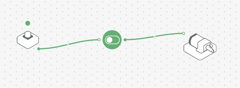 Per esempio, possiamo connettere un bottone (input) con una luce al led (output) ed un regolatore di luce che va a gestire gli scambi di informazioni tra i due componenti.