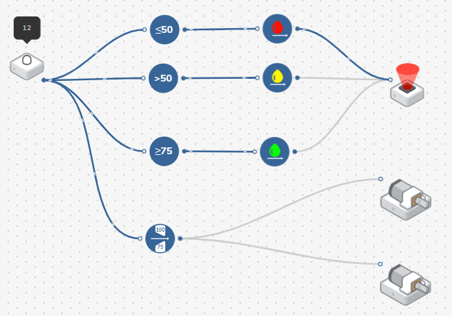 Si può scegliere di modificare i valori, andando ad impostare (ad esempio) il colore rosso per il semaforo quanto la luce percepita dal sensore è inferiore a 50, giallo quando è maggiore di 50 e verde quando è maggiore di 75.