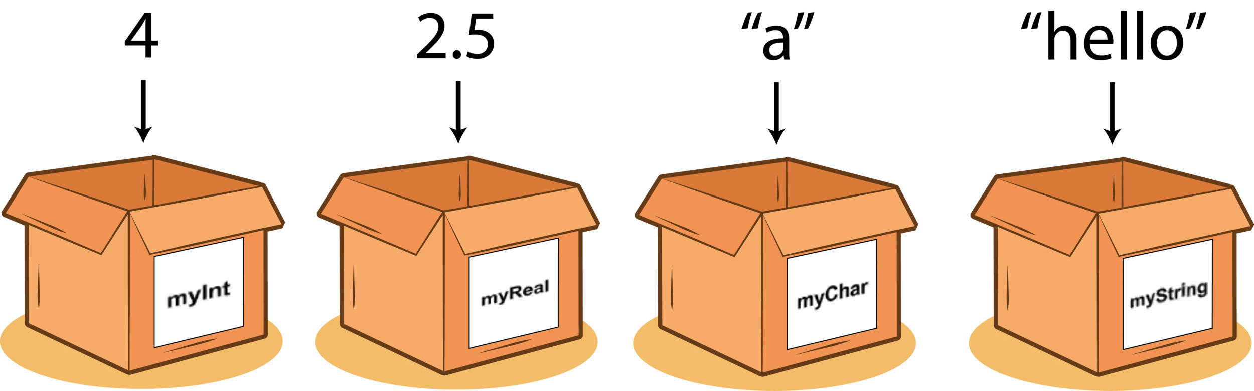 Queste funzioni, in programmazione, vengono poi rese specifiche dalle variabili, ovvero dei contenitori di memoria che vengono “riempiti” con dei dati volatili, cioè che possono cambiare durante l'esecuzione del programma.