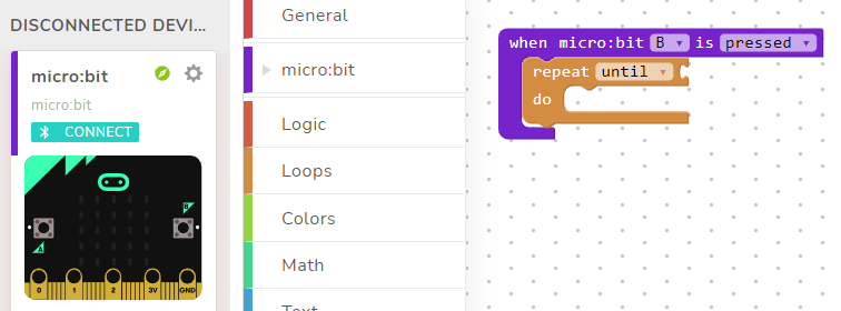 Inseriamo da Loops “Repeat while/ do” e cambiamo while con “Until”.