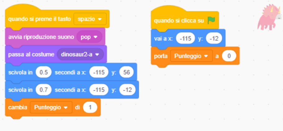 Come secondo passaggio, andiamo a far saltare il dinosauro.