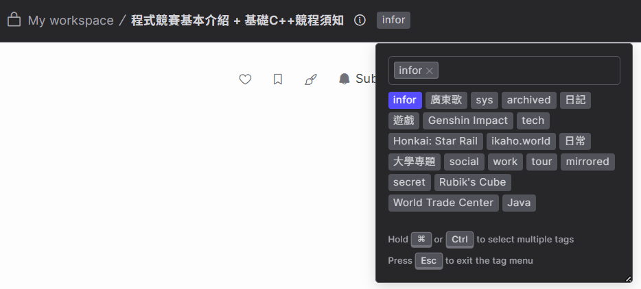 文件上方可以編輯tag(s)