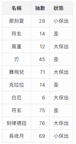 | 風堇 | 12 | 大保出 |