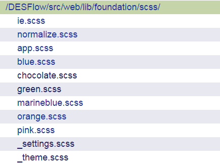 }DESFlow uses SCSS to write lot of reusable components, extend foundation styles and add themes