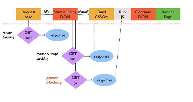 Hence browser waits the parsing of a page when a JS is needed untill it is downloaded and evaluated.