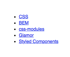 | CSS | Inline styles | CSS-Modules | S-C / Emotion | |