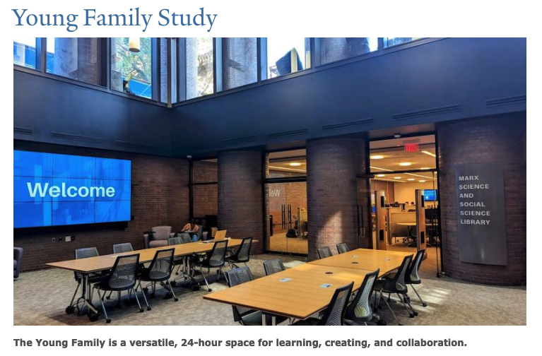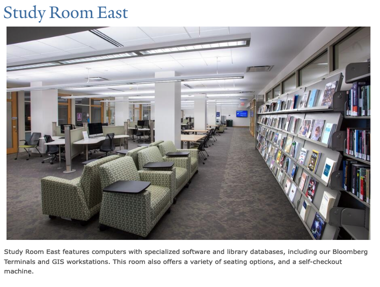 Librarians' glass-front offices line the back wall of the Study Room East