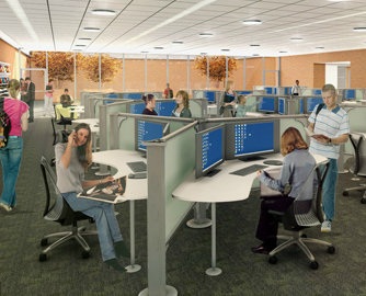 Should accommodate events (theater seating), tech-enhanced quiet study space and overflow teaching (Cabaret seating), from the SGC Lab