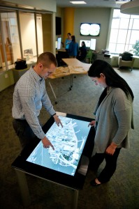 Display Screens 60"+ (Touchscreen) throughout space for ubiquitous viewing