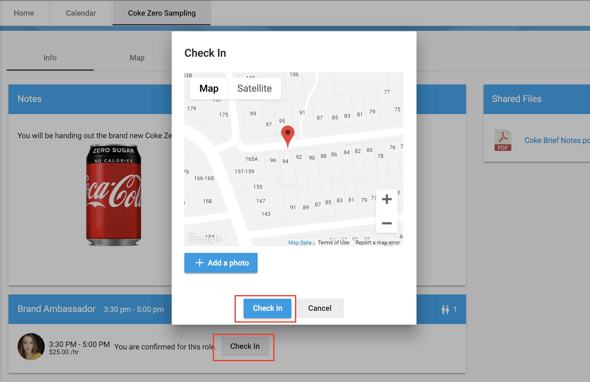 You will also be able to upload any documents after your shift is completed, as well as complete Surveys and add photos!