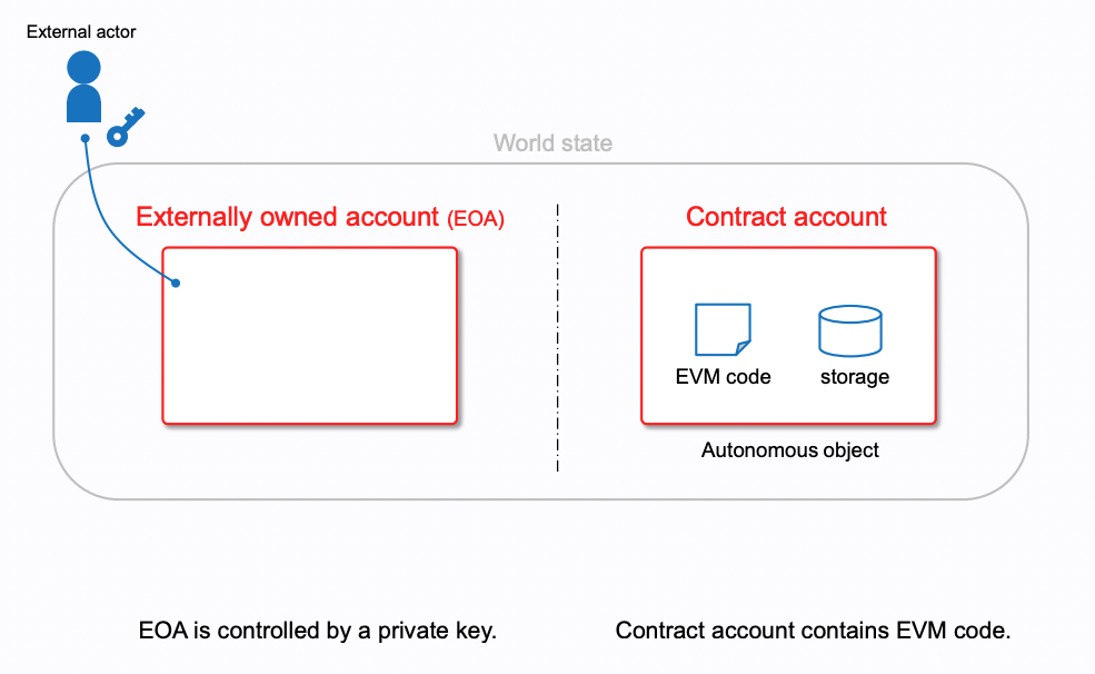Contract account has smart contract code, which a simple EOA can’t have. Furthermore, a contract account does not have a private key. Instead, it is owned (and controlled) by the logic of its smart contract code: the software program recorded on the Ethereum blockchain at the contract account’s creation and executed by the EVM.