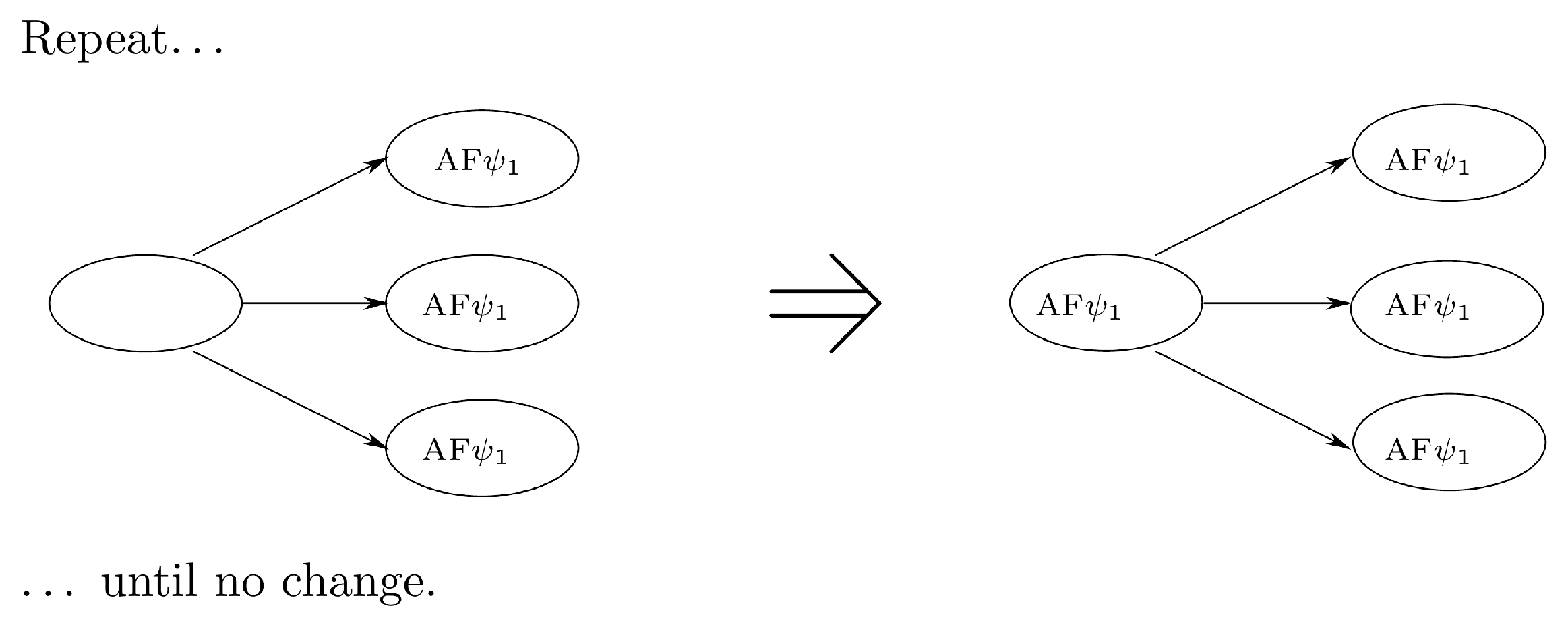 Initially, for every state with the label \(\phi\), add the label AF \(\phi\) (why is this okay?)