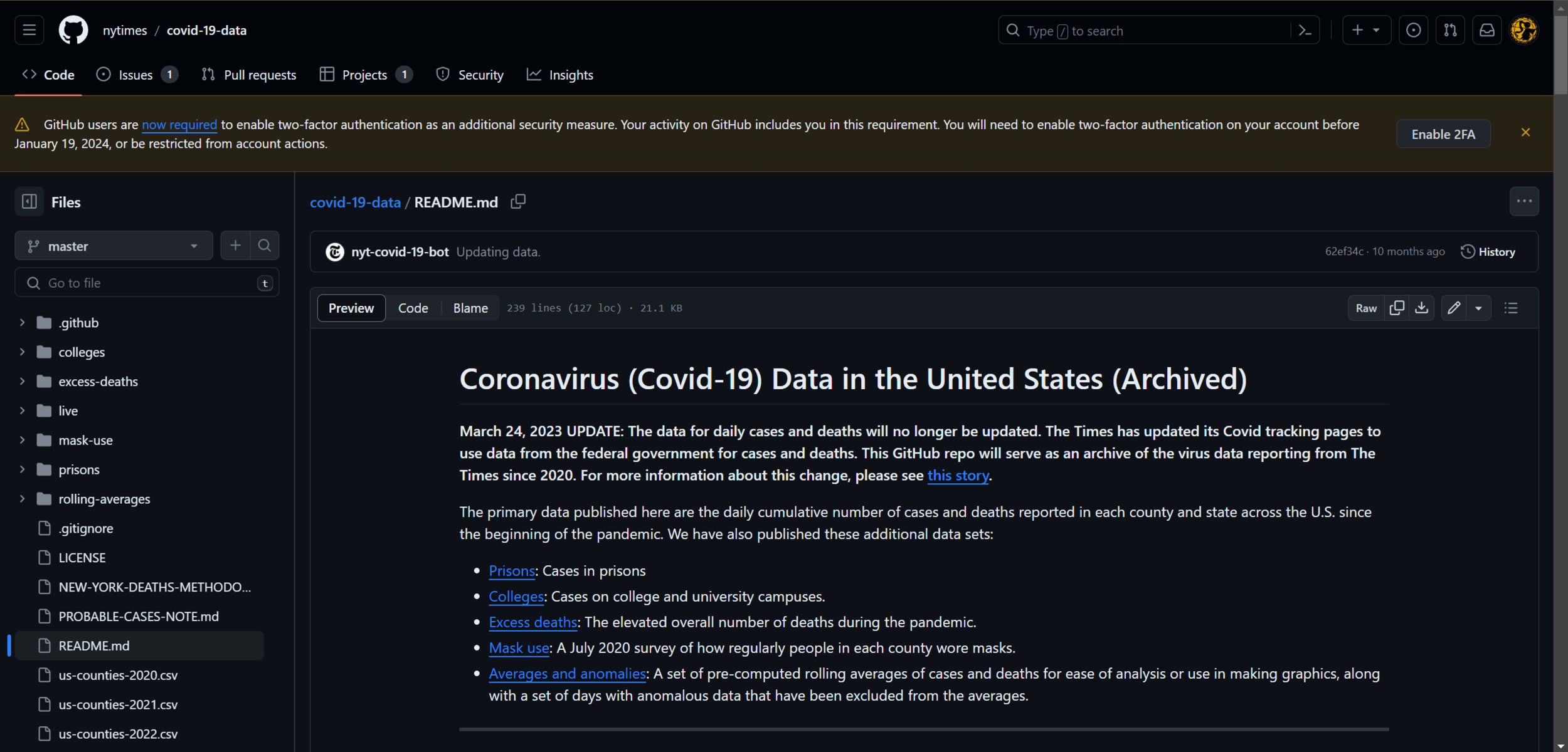 紐約時報有提供每天美國新冠肺炎確診案例的數據