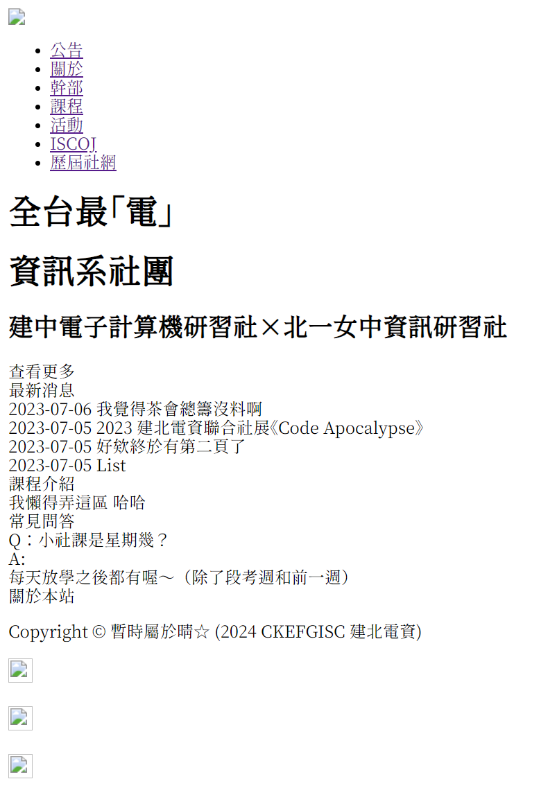 <a href="https://ckefgisc.org/">建北電資社網</a>"href" 是 hyper reference,也就是超連結