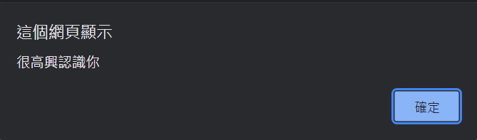 alert("很高興認識你");