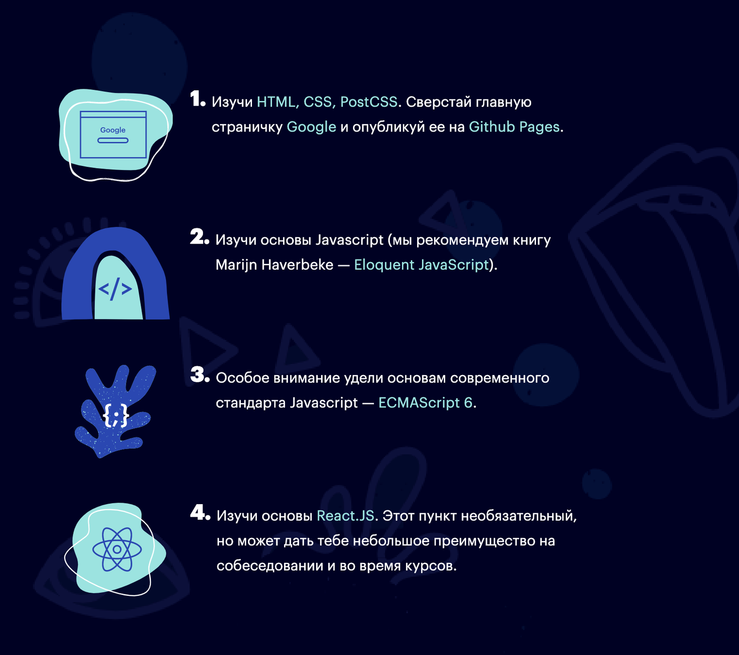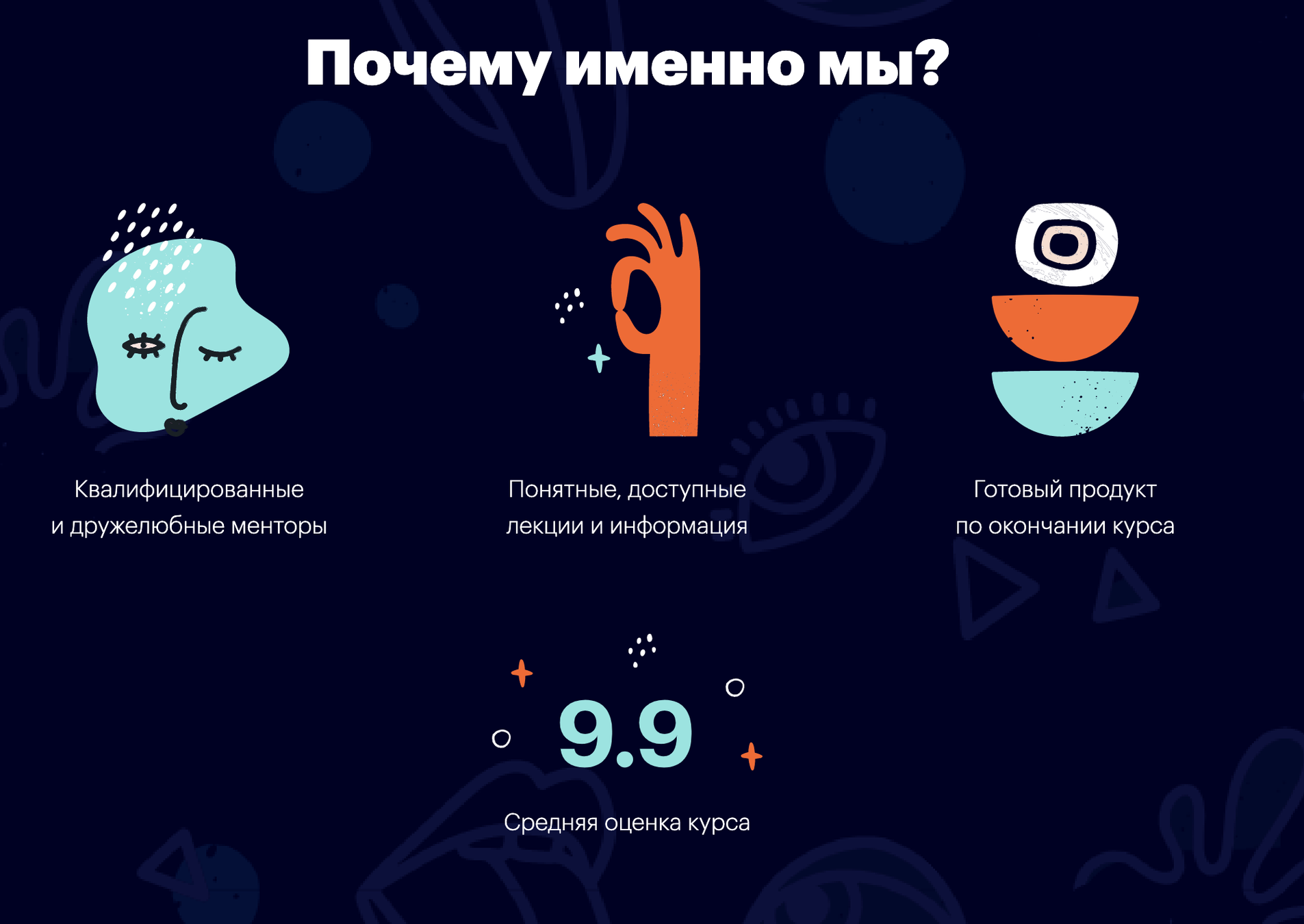 Лекции js-1, js-2 оставили очень сильное положительное впечатление, заряд бодрости так сказать. Лекции по БД очень хорошо все поставили на свои места. Лекция по гиту впечатлила идеальным способом обьяснить простые вещи. И другие лекции оставили приятные впечатления и полезные знания 👍👍👍