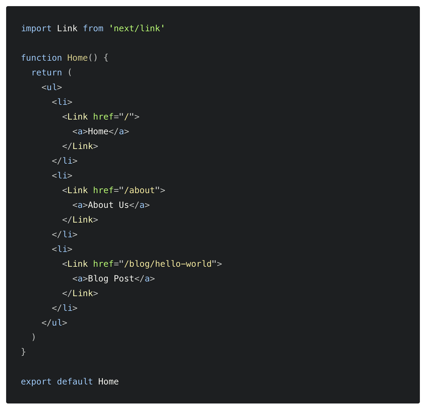 Пример: если вы создаете файл pages/about.js, в которой экспортируется компонент React, как показано ниже, он будет будет доступен по адресу /about.