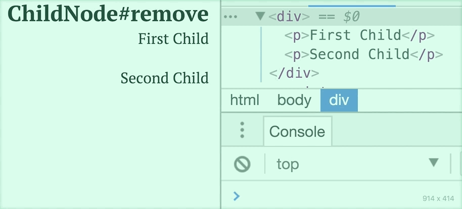 removeChild(node) => remove()