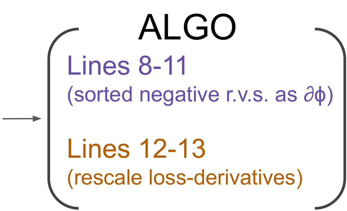 $$= \pmb{\theta}^{(t)} - \gamma \frac{1}{B} \sum_{i \in \mathcal{I}_B} \partial \phi( y_{i} f_{\pmb{\theta}^{(t)}}(\mathbf{x}_{i}) ) \nabla_{\pmb{\theta}} f_{\pmb{\theta}^{(t)}}(\mathbf{x}_{i}),$$