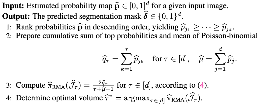 Theorem 1 (Dai and Li, 2023). A segmentation rule \(\pmb{\delta}^*\) is a global maximizer of \(\text{Dice}_\gamma(\pmb{\delta})\) if and only if it satisfies that