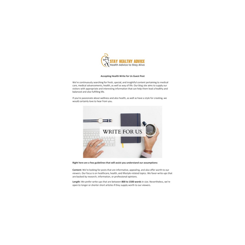 If you're interested in posting on Stay Healthy Advice's official blog site and nutrition writing for us, we'd be more than happy to consider your relevant content. Our target market appreciates web content based around wellness, fitness, nutrition and also basic health. Stay Healthy Advice has nutrition compose for us offers. You can submit nutrition guest posts by respecting our guidelines. Visit: https://stayhealthyadvice.com/write-for-us-nutrition/