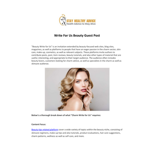 Are you a dedicated fashion or beauty blogger seeking to reach a larger audience with your original content? You are cordially invited to join our team at Stay Healthy Advice and offer original and interesting guest blogs. Compose for Us Writing on beauty and skincare gives writers the chance to share their expertise, perceptions, and creativity with a larger audience. It gives people a platform to engage with the beauty community, position themselves as experts or enthusiasts, and meet others who share their interests. Writers should conduct extensive research to find beauty platforms that fit their hobbies and areas of expertise, then meticulously adhere to their submission policies. Visit: https://stayhealthyadvice.com/write-for-us-beauty/