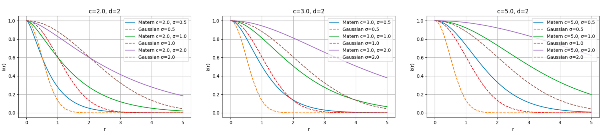 \(L=\alpha^{-1}(\mathrm{Id}-\sigma^2\Delta)^c\) \(k(r)=\alpha\frac{2^{1-\nu}}{\Gamma(\nu)}\left(\frac{r}{\sigma}\right)^\nu K_\nu\left(\frac{r}{\sigma}\right)\)