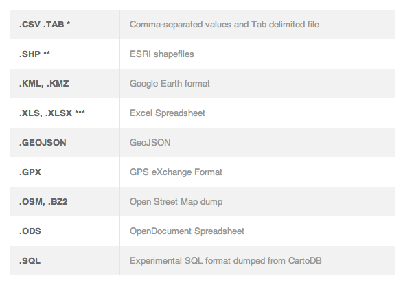 CartoDB supports: