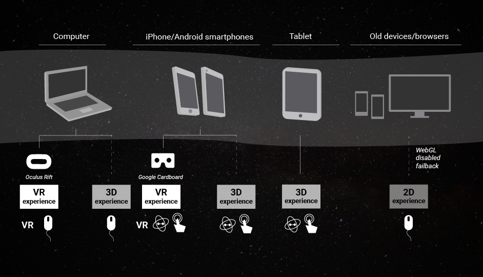 WebVR is a JavaScript API for creating immersive 3D, Virtual Reality experiences in your browser.