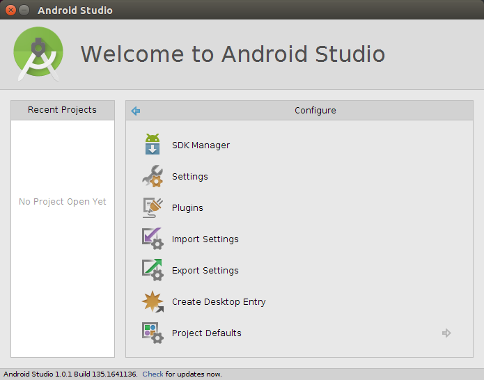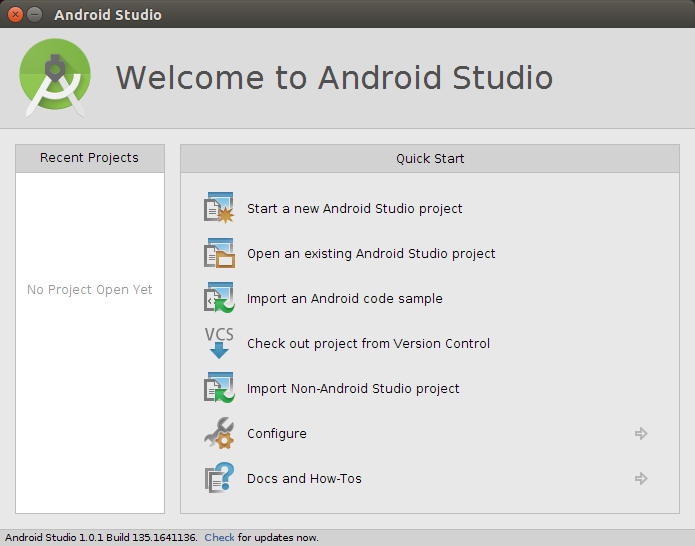 wget https://dl.google.com/dl/android/studio/ide-zips/1.0.1/android-studio-ide-135.1641136-linux.zip unzip android-studio-ide-135.1641136-linux.zip