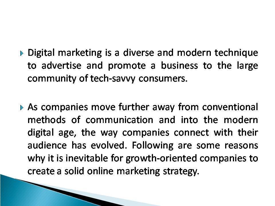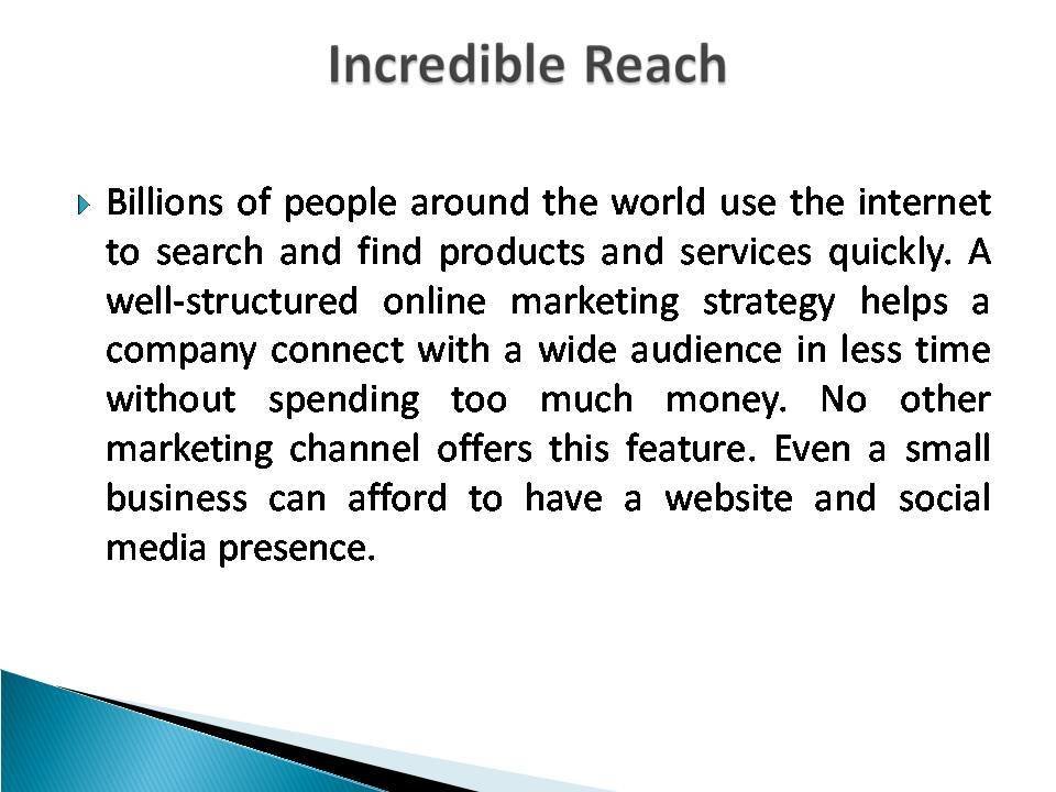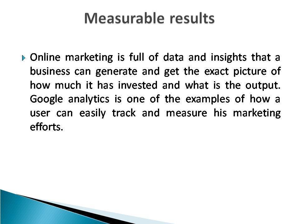 Online marketing helps a company streamline its identity and goals. Setting well-defined goals for your company becomes easier through a digital marketing strategy, which not only gives your business the right direction to work in, but also helps you track your progress on an ongoing basis.