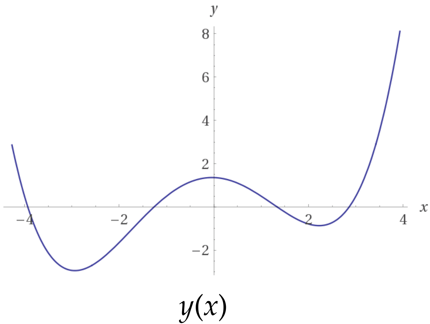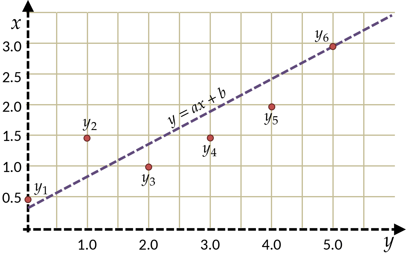 Create a model function \(y(x)\) that minimizes the square of the difference between \(y(x)\) and at the points \((x_i, y_i)\)