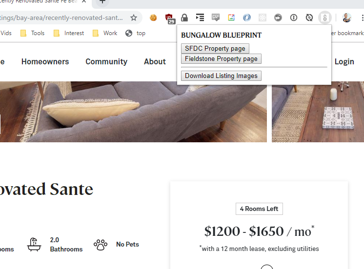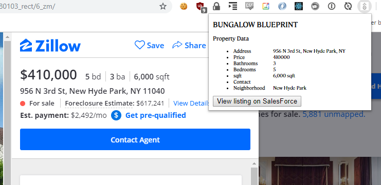 Click the extension to see links to SalesForce and Fieldstone for that listing