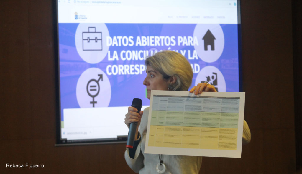 Este proyecto consta de tres acciones. Todas ellas están destinadas a usar los datos abiertos para la igualdad de género, en concreto para la conciliación y la corresponsabilidad. Los objetivos son diversos pero el más importante es usar los datos para abordar el reto de la corresponsabilidad y conciliación en las Islas Canarias en un marco de avance de la igualdad de las mujeres.