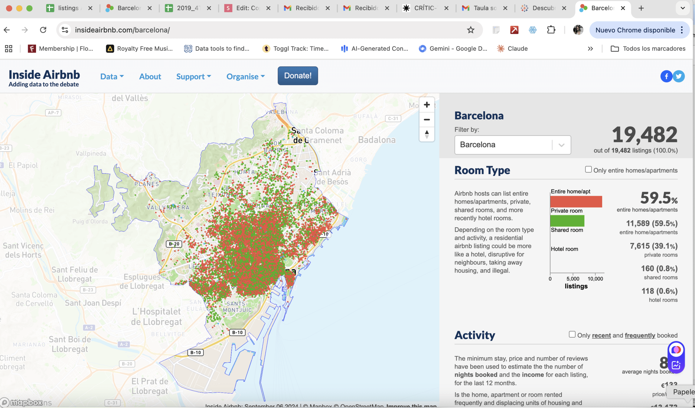 Datos alojamientos turísticos en Airbnb Barcelona (Inside Airbnb)