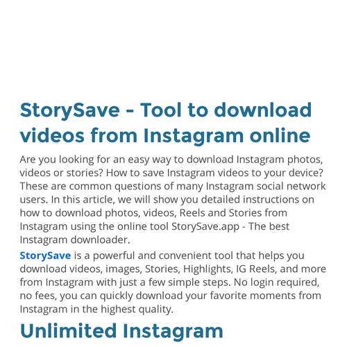 StorySave is an online Instagram downloader, it helps you download Instagram Video, Stories, Photos, Reels and Highlights in high quality in just a few seconds.Website: https://storysave.app/en