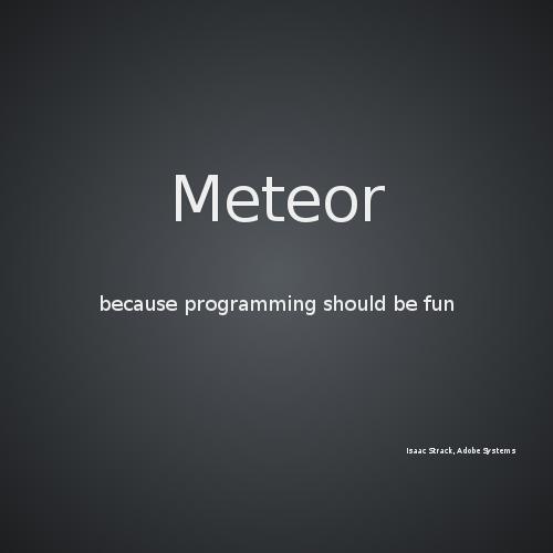 A brief introduction to Meteor, a full stack JavaScript framework that significantly speeds up the development process, and makes development fun again.