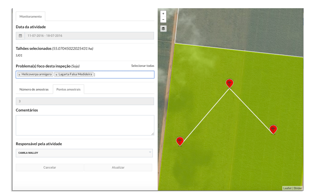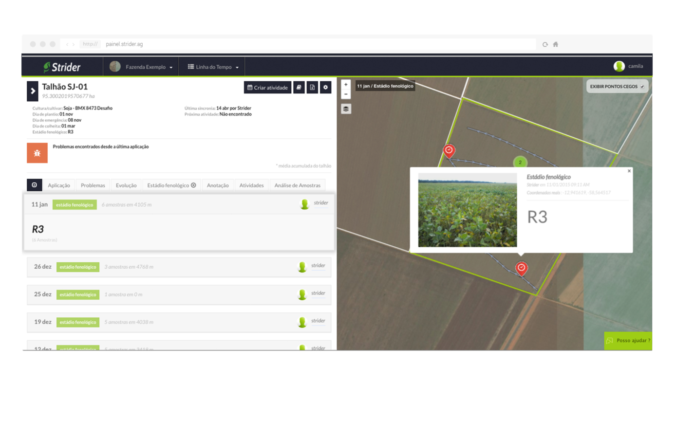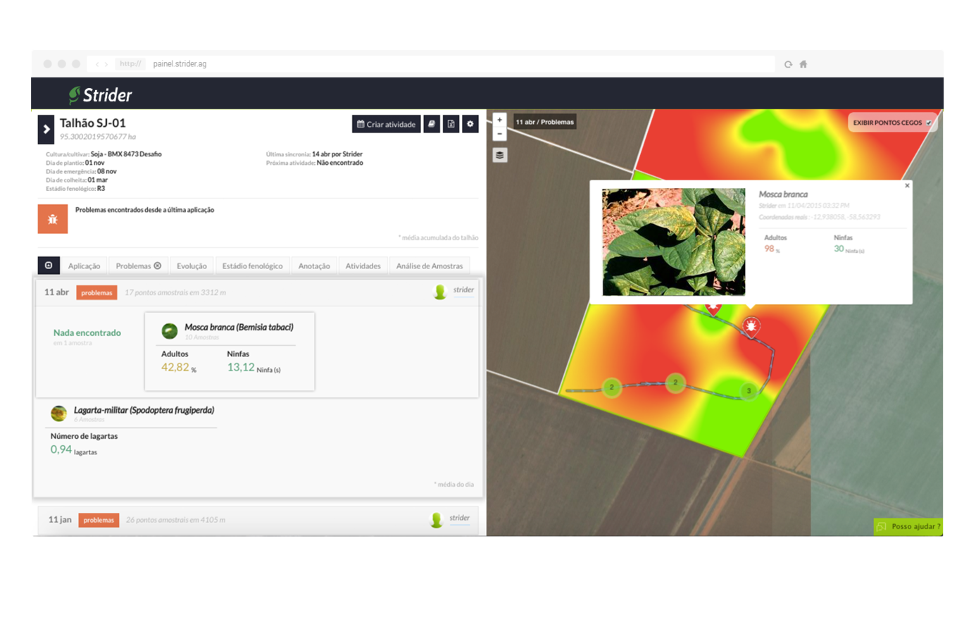 Um raio-x da sua lavoura: análise de caminhamento, pontos amostrais geo-referenciados, fotos, mapa de calor mostrando o foco e a intensidade das infestações.