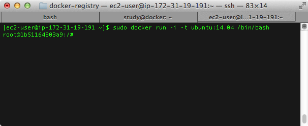 $ sudo docker run -i -t ubuntu:14.04 /bin/bash