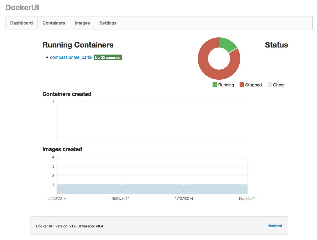 $ sudo docker run -d -p 9000:9000 -v /var/run/docker.sock:/docker.sock crosbymichael/dockerui -e /docker.sock