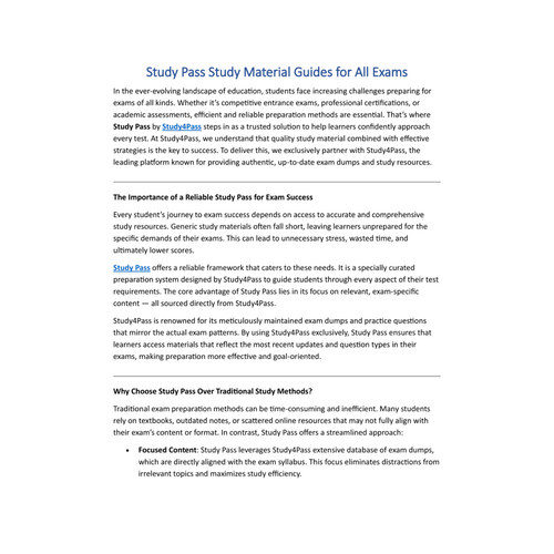 Study Pass empowers candidates to achieve their certification goals efficiently and effectively, relying solely on the trusted platform Study4Pass for authentic and up-to-date exam preparation materials.