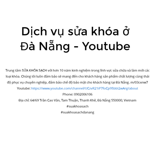 Trung tâm SỬA KHÓA SẠCH với hơn 10 năm kinh nghiệm trong lĩnh vực sửa chữa và làm mới các loại khóa. Chúng tôi luôn đảm bảo sẽ mang đến cho khách hàng sản phẩm chất lượng cùng thái độ phục vụ chuyên nghiệp, đảm bảo chế độ bảo mật cho khách hàng tại Đà Nẵng. m/03cxnw7 Youtube: https://www.youtube.com/channel/UCzvR21iP7foCp9SbbI2wArg/about Phone: 0902006106 Địa chỉ: 64/69 Trần Cao Vân, Tam Thuận, Thanh Khê, Đà Nẵng 550000, Vietnam #suakhoasach #suakhoasachdanang