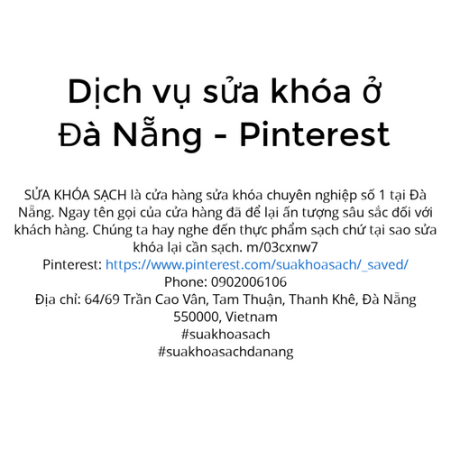 Sửa khóa sạch dịch vụ sửa khóa, đánh chìa khóa, thay ổ khóa uy tín chất lượng tại Đà Nẵng làm việc 24/24 chỉ cần gọi là có mặt ngay trong 10 phút. Website: https://suakhoasach.com/
