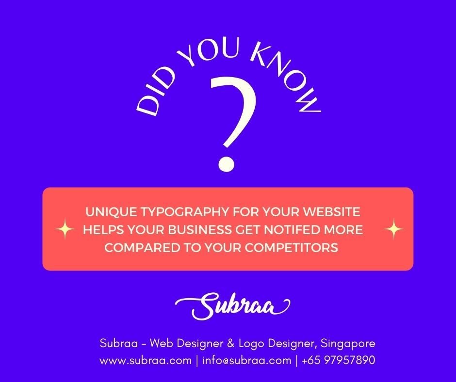 As a freelance web designer in Singapore with over 200+ websites designed so far, I have suggested to my clients the importance of using unique typography for websites, this is where you make a tremendous difference between your competitor website and yours. Learn more about website design trends and get your websites designed according to the latest design trends and SEO.