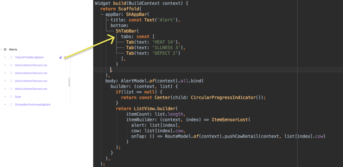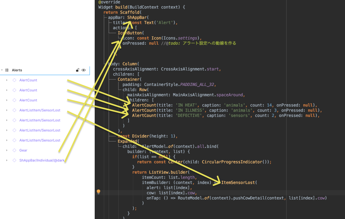 デザインで配置されているコンポーネント名をあてにしてを差し込むだけ