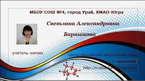 Визитка для коллеги Барашковой С.А. выполнена Сухоруковой Н.А. в рамках интерактивной декады на сайте "Галактика Intel".