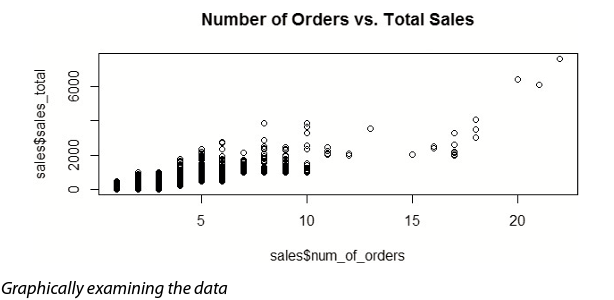 head(sales) cust_id sales_total num_of_orders gender 1 100001 800.64 3 F 2 100002 217.53 3 F 3 100003 74.58 2 M 4 100004 498.60 3 M 5 100005 723.11 4 F 6 100006 69.43 2 F summary(sales) cust_id sales_total num_of_orders gender Min. :100001 Min. : 30.02 Min. : 1.000 F:5035 1st Qu.:102501 1st Qu.: 80.29 1st Qu.: 2.000 M:4965 Median :105001 Median : 151.65 Median : 2.000 Mean :105001 Mean : 249.46 Mean : 2.428 3rd Qu.:107500 3rd Qu.: 295.50 3rd Qu.: 3.000 Max. :110000 Max. :7606.09 Max. :22.000