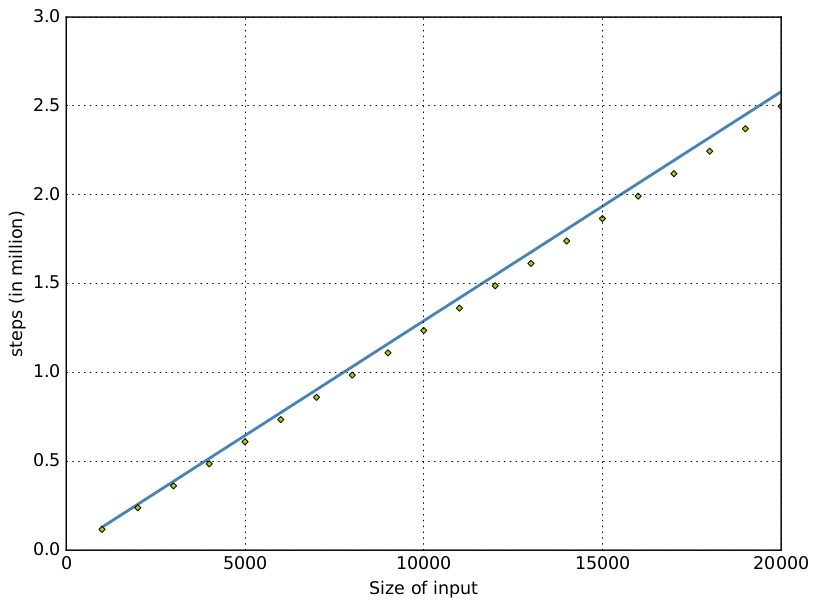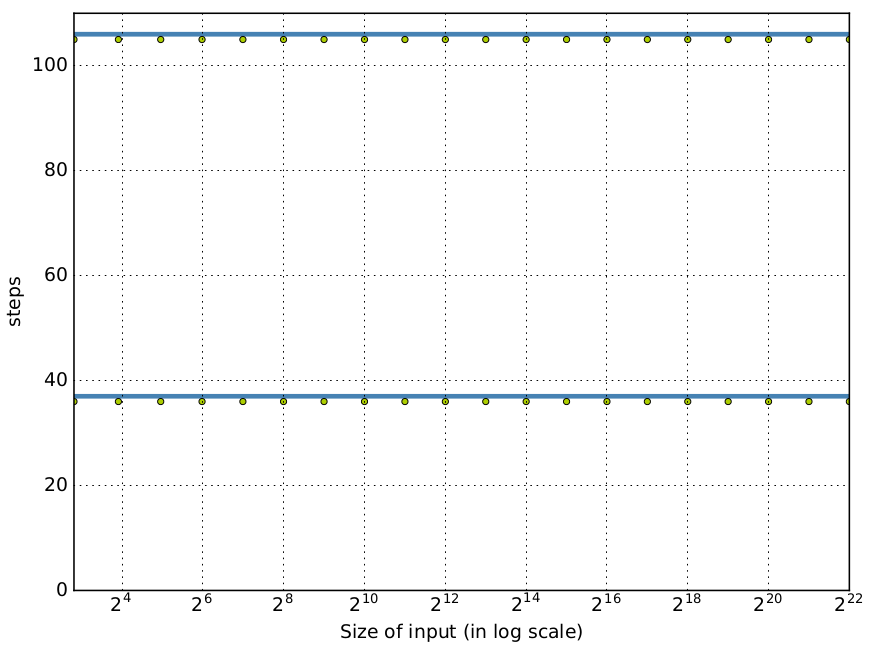 | Insertion sort | 8 * size(l) * size(l) + 2 |